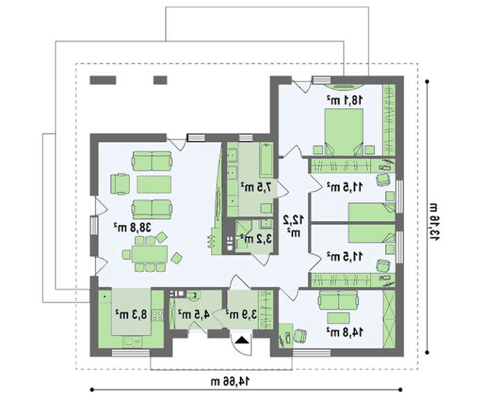• 4M393 Одноэтажный дом с шикарной террасой