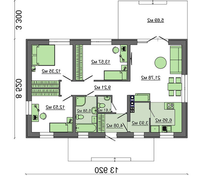 Проект содержит три раздела – АрхитектурныйКонструктивный и Инженерный: водоснабжение, отопление, вентиляция, канализация, электроснабжение (приобретается за дополнительную плату) + Пояснительная записка.
