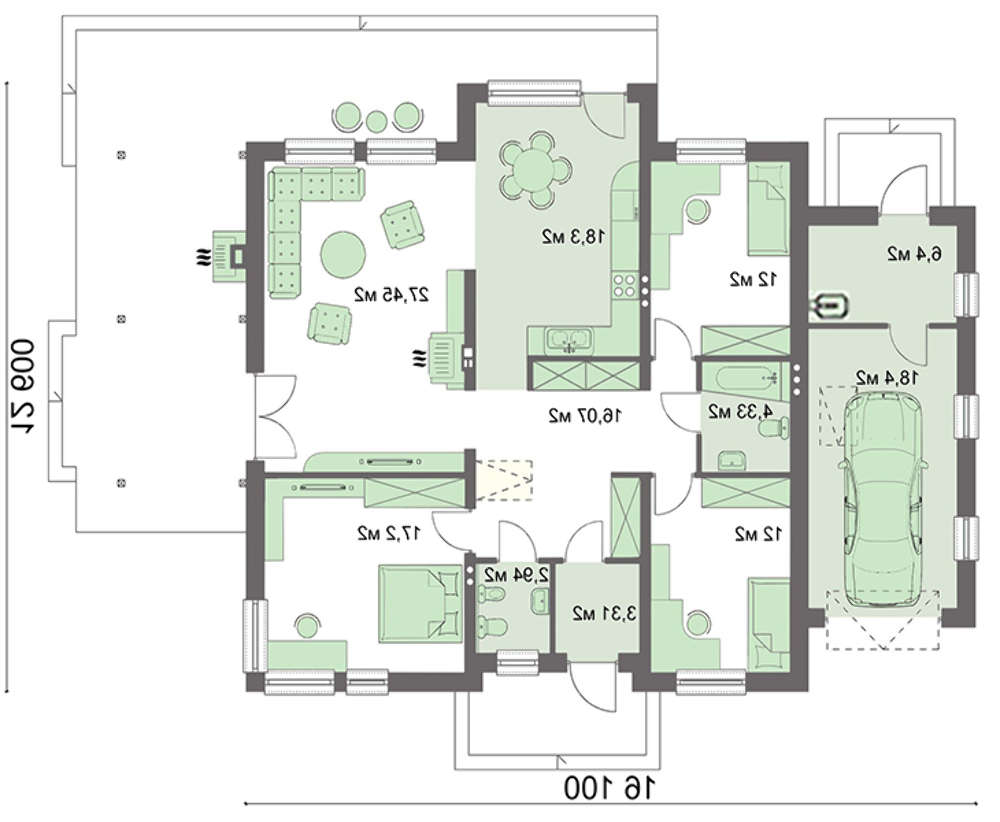 Проект содержит три раздела – Архитектурный, Конструктивный и Инженерный: водоснабжение, отопление, вентиляция, канализация, электроснабжение (приобретается за дополнительную плату) + Пояснительная записка.