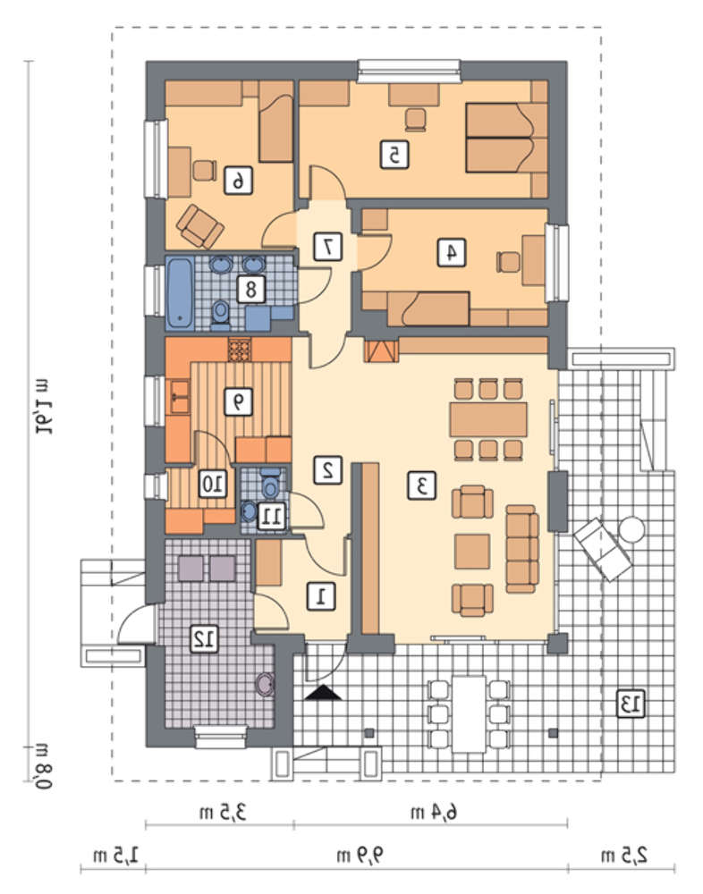 Проект содержит три раздела – АрхитектурныйКонструктивный и Инженерный: водоснабжение, отопление, вентиляция, канализация, электроснабжение (приобретается за дополнительную плату) + Пояснительная записка.