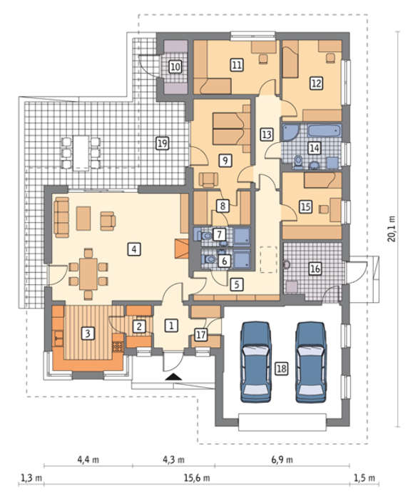 • 4M6136 Одноэтажный просторный дом с гаражом