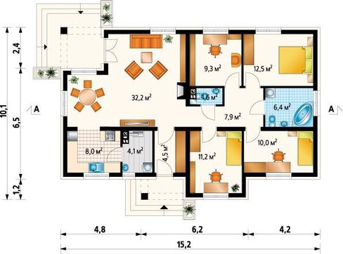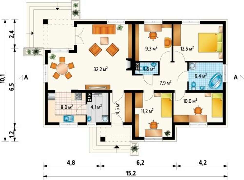 Одноэтажный жилой дом с тремя спальнями и кабинетом
