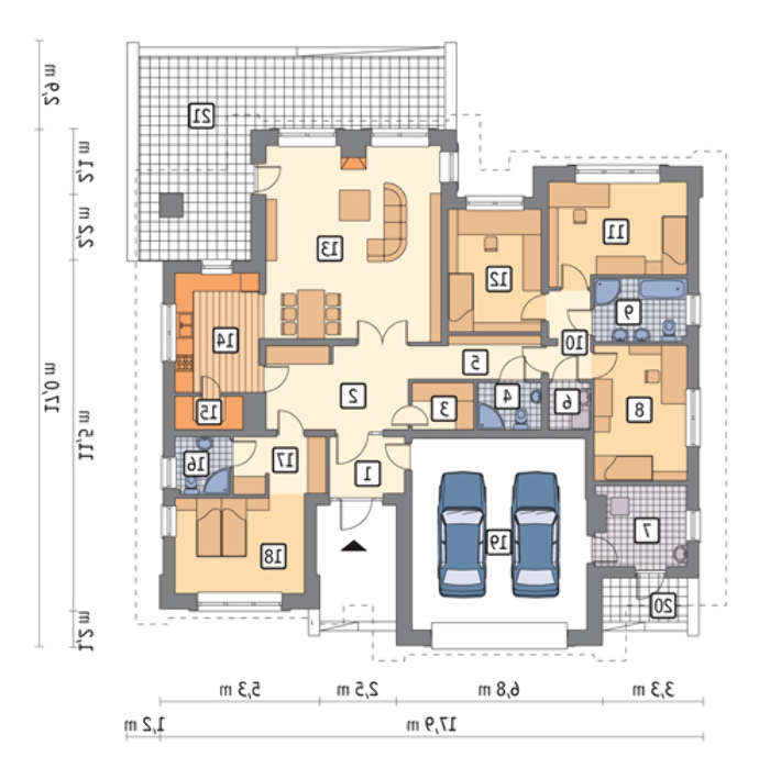 Проект содержит три раздела – АрхитектурныйКонструктивный и Инженерный: водоснабжение, отопление, вентиляция, канализация, электроснабжение (приобретается за дополнительную плату) + Пояснительная записка.