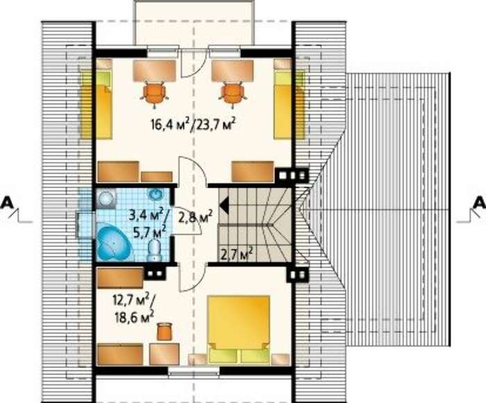 Угол наклона кровли:45°, 30 °