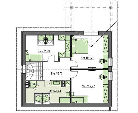 • 4M1457 План компактного дома в европейском стиле площадью 147 кв. м, декорированного натуральным камнем