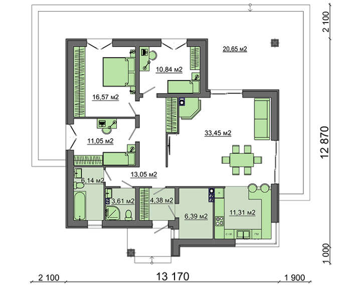 • 4M597 План компактного модного коттеджа на 103 кв. м для молодой семьи