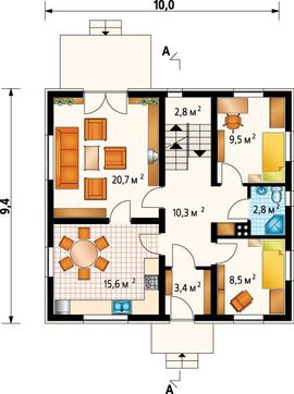 • 4M3548 План компактного загородного дома с цокольным этажом