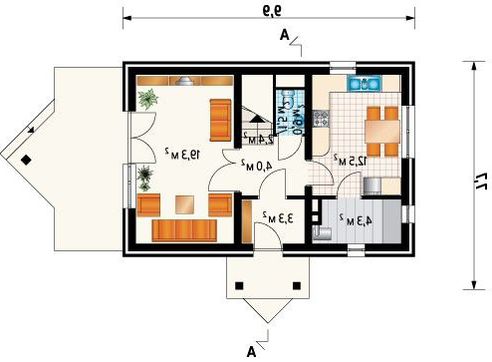 • 4M3532 План небольшого жилого дома с тремя спальнями