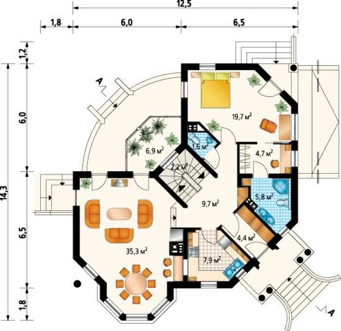 План особняка площадью 231 кв. м в современном европейском стиле