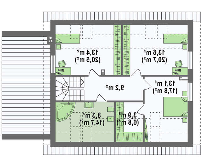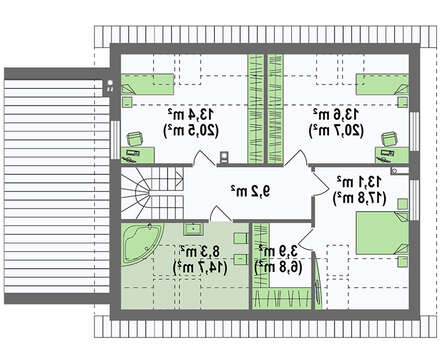 План строительства мансардного дома общей площадью 206 кв.м. 4M7020