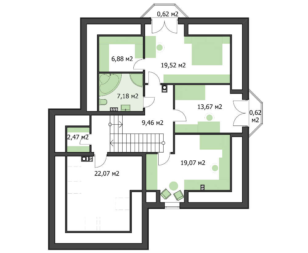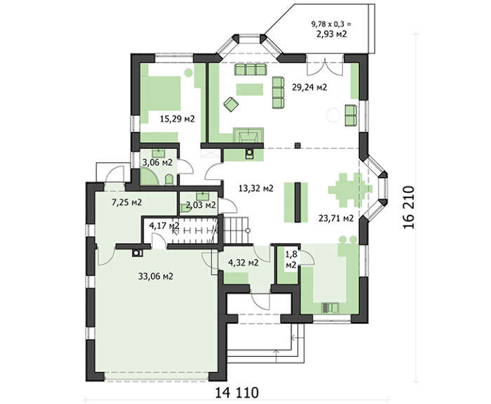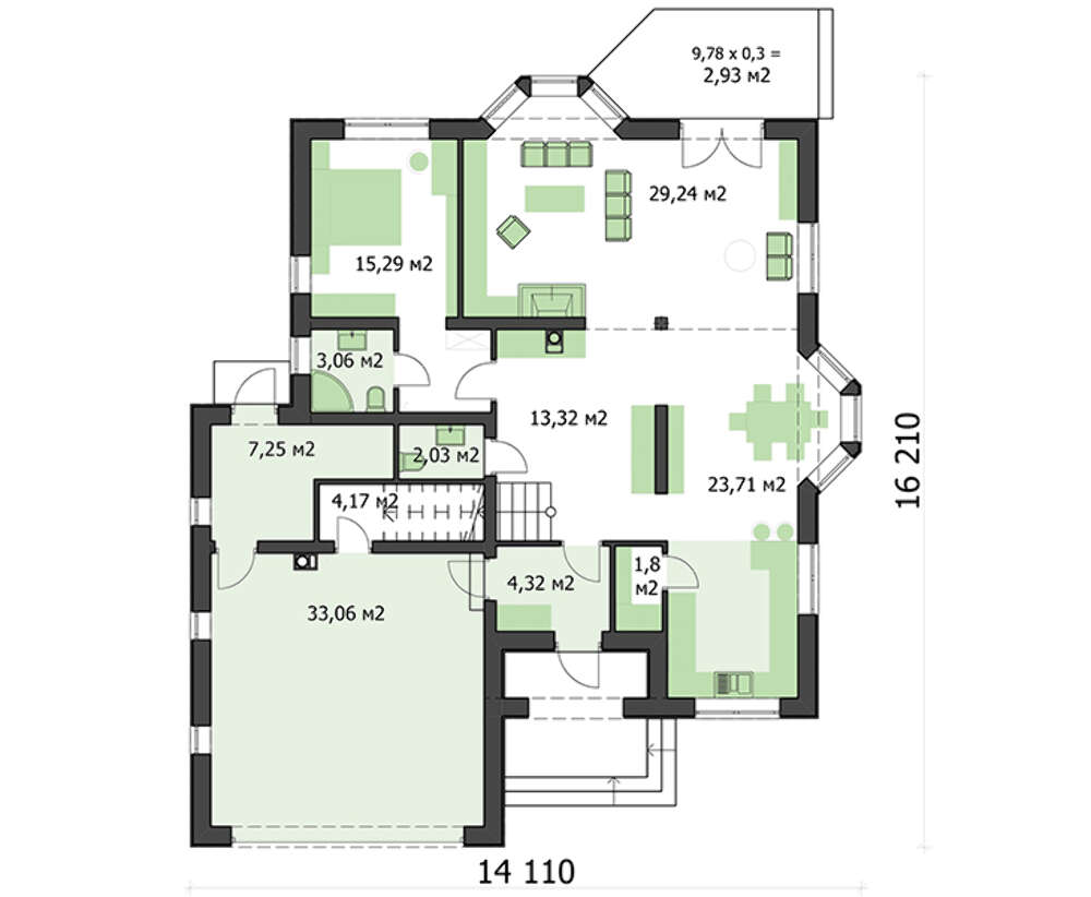 Планировка дома в два этажа на 241 кв. м с просторным гаражом