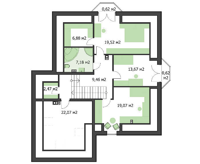 Проект содержит три раздела – АрхитектурныйКонструктивный и Инженерный: водоснабжение, отопление, вентиляция, канализация, электроснабжение (приобретается за дополнительную плату) + Пояснительная записка.