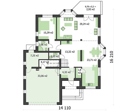 • 4M3790 Планировка дома в два этажа на 241 кв. м с просторным гаражом