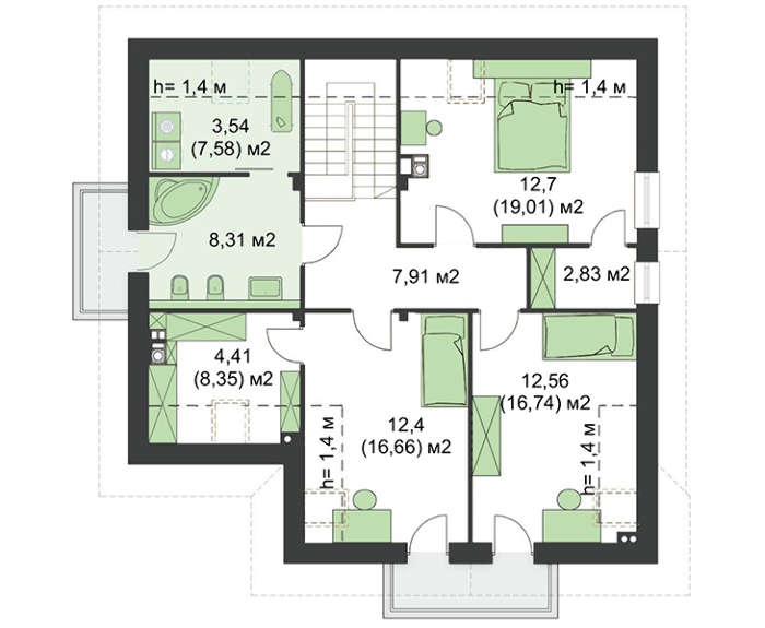 Большой семье из нескольких поколений предлагаем обратить внимание на симпатичный двухэтажный дом с четырьмя спальнями. Приятное впечатление достигнуто за счет использования для окраски стен светлых оттенков. В качестве декора применены натуральный материал - дерево. Благодаря использованию таких дизайнерских секретов, жилой дом будет всегда выглядеть модно и стильно. Небольшие, но компактные балконы, помогут жильцам больше времени проводить на свежем воздухе, в романтической обстановке наблюдать за закатами и рассветами, пить обжигающую чашечку утреннего кофе.