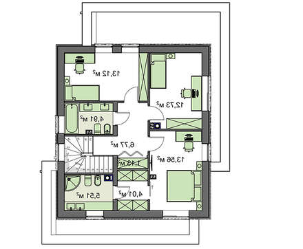 • 4M7112 Планировка двухэтажного коттеджа на 133 кв. м с четырьмя спальнями и тремя санузлами
