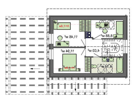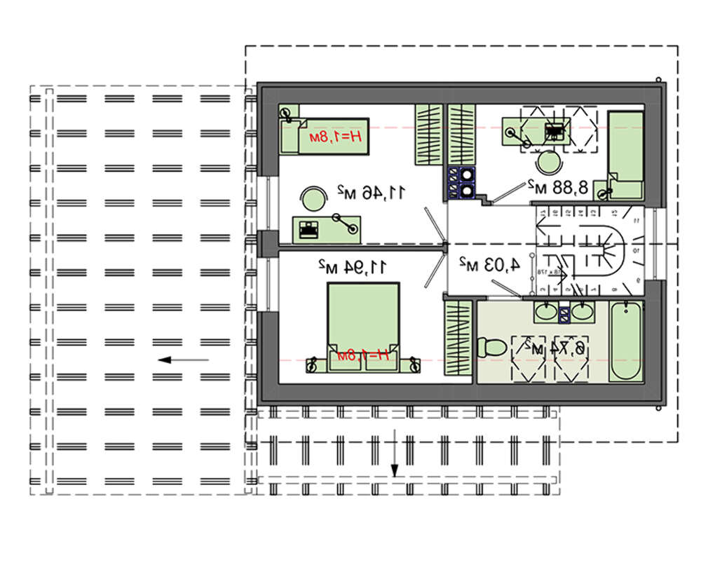 • 4M7132 Планировка компактного дома на 104 кв. м с мансардным этажом на три спальни