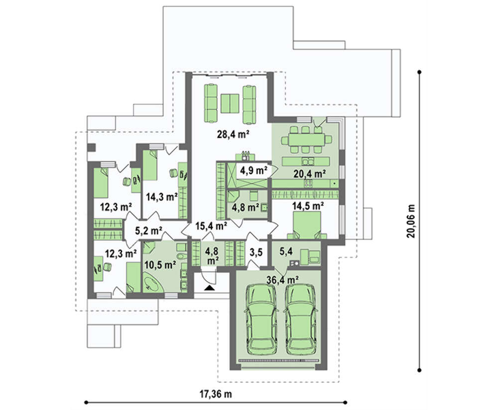Планировка привлекательного коттеджа на 246 кв. м с просторной гостиной и витражными окнами 4M7109