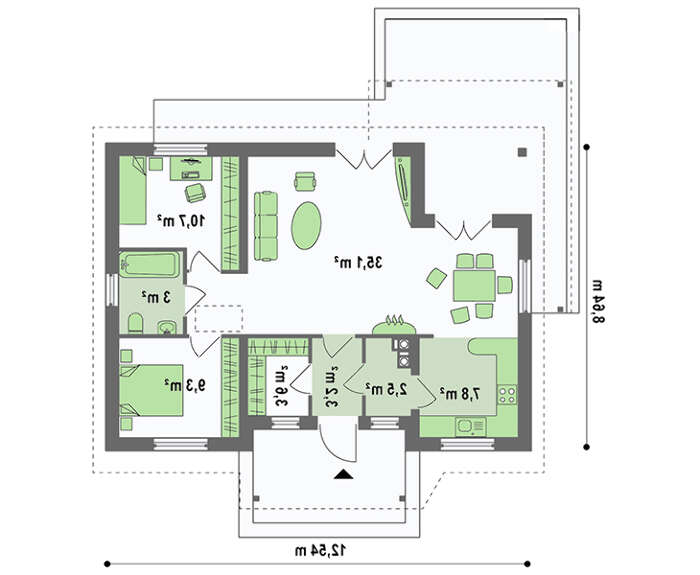 Планировка сезонного коттеджа площадью 75 кв. м для отдыха 4M7122