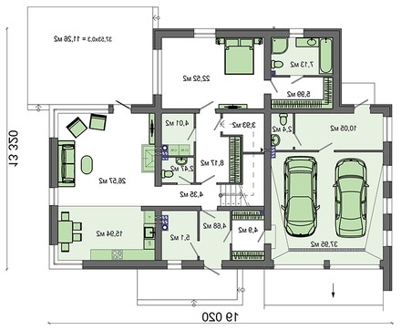 Внутреннее пространство включает все необходимы для поддержания комфорта помещения. Площадь встроенного гаража составляет свыше 37 квадратов, чего достаточно для хранения двух автомобилей высокого класса. Имеется специальное помещение с санузлом и отдельны выходом, где достаточно мест для организации мастерской и установки стеллажей, чтобы хранить инструмент и оборудование.