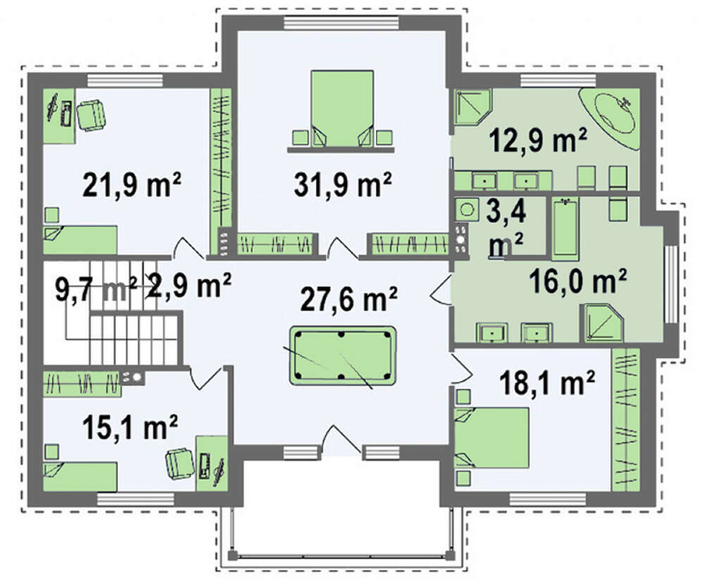 Первый этаж по своему размаху готов выдержать дворянское собрание. Здесь все рассчитано на светскую жизнь, теплый прием гостей, вальсирование кавалеров и милое перешептывание жеманных красавиц Четыре громадные спальни своими размерами способны потрясти жителей одно и двухэтажных квартир. Они уютно разместят как орбиталей усадьбы, так и их многочисленных гостей. Свободного места все равно остается достаточно, чтобы собираться всем вместе внутри здания для чинного разговора. Можно пойти дальше, организовать настоящий роскошный бильярдный зал — территорию мужского влияния.