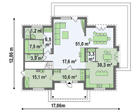 Проект содержит три раздела – АрхитектурныйКонструктивный и Инженерный: водоснабжение, отопление, вентиляция, канализация, электроснабжение (приобретается за дополнительную плату) + Пояснительная записка.