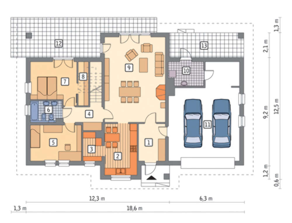 Проект содержит три раздела – АрхитектурныйКонструктивный и Инженерный: водоснабжение, отопление, вентиляция, канализация, электроснабжение (приобретается за дополнительную плату) + Пояснительная записка.