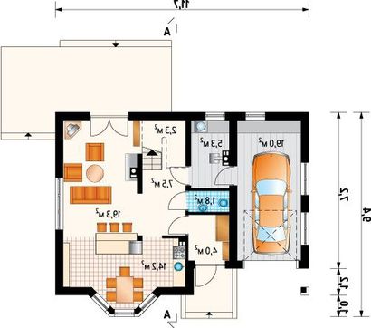Привлекательный проект мансардного коттеджа с эркером в кухне-студио 4M3270