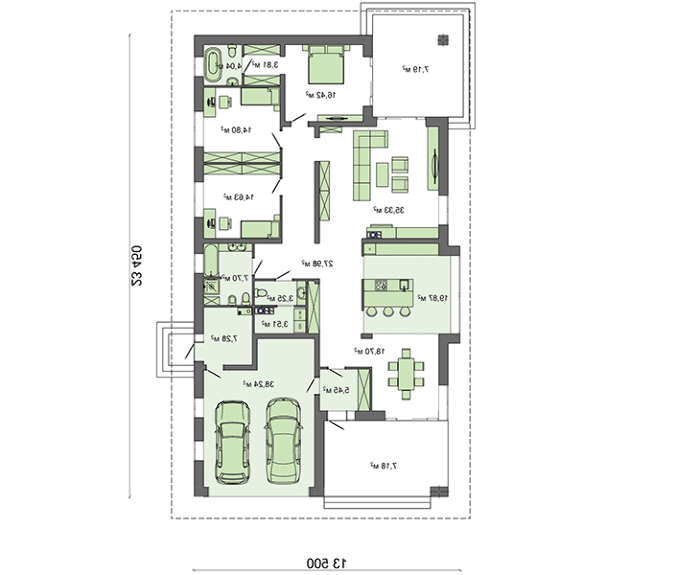 Автолюбителю не стоит волноваться о сохранности транспорта, просторный гараж на два автомобиля на отлично справиться с этой проблемой. Имеется место и для организации мастерской, чтобы хранить инструмент и запчасти и выполнять сервис. Три спальни объединены в жилую зону, размещены рядом. Наибольший интерес вызывают хозяйские апартаменты, которые кроме спальни включают санузел и собственный гардероб.