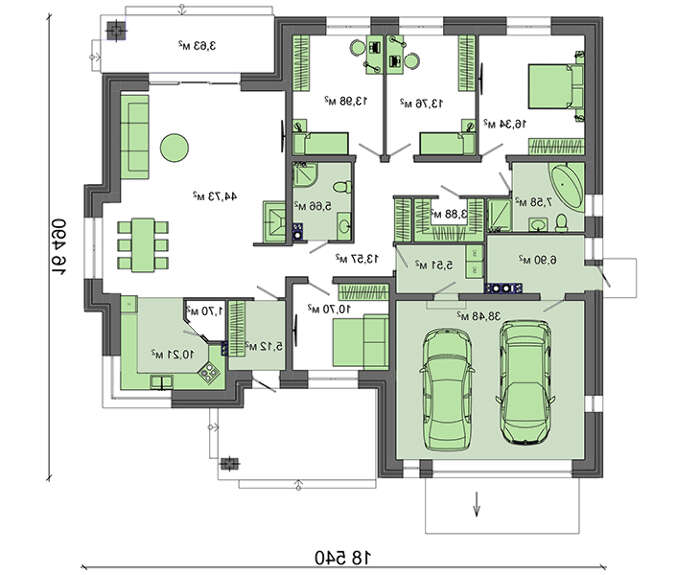 Проект 1 этажного дома с гаражом для 2 авто общей площадью 201 кв.м. 4M1504