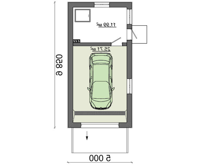Для обустройства въездного портала использован пандус. Гаражные ворота секционные с автоматическим приводом. Высота помещения 2,6 м обеспечивает вертикальное открытие и горизонтальное расположение полотна под потолком.