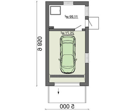 Общая площадь постройки в 38 кв. м позволяет поместить автомобиль, чем защитить его от атмосферных осадков. Места достаточно для обустройства стеллажей, что позволит хранить запчасти и инструмент. Часть помещения площадью в 12 квадратов выделена в отдельную комнату с подвалом.