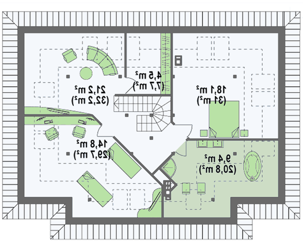 Проект большого дома площадью 230 кв.м. с мансардой 4M506