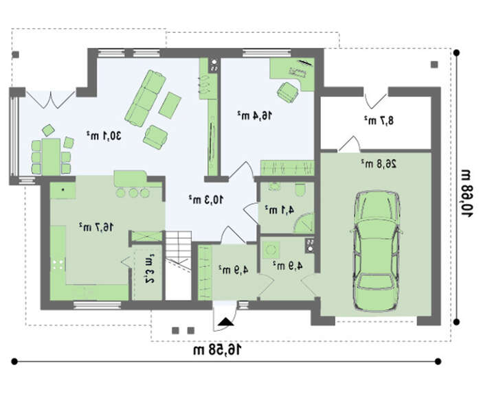 Высота дома:9.55 м