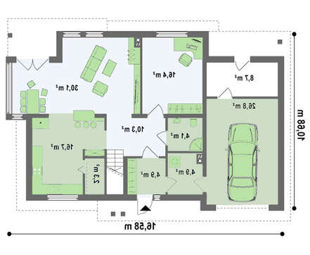 • 4M608a Проект большого двухэтажного дома с гаражом и четырехскатной крышей
