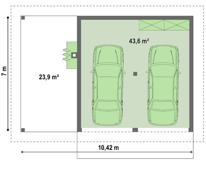 Проект большого гаража на 2 авто площадью 50 кв.м. 4M7069