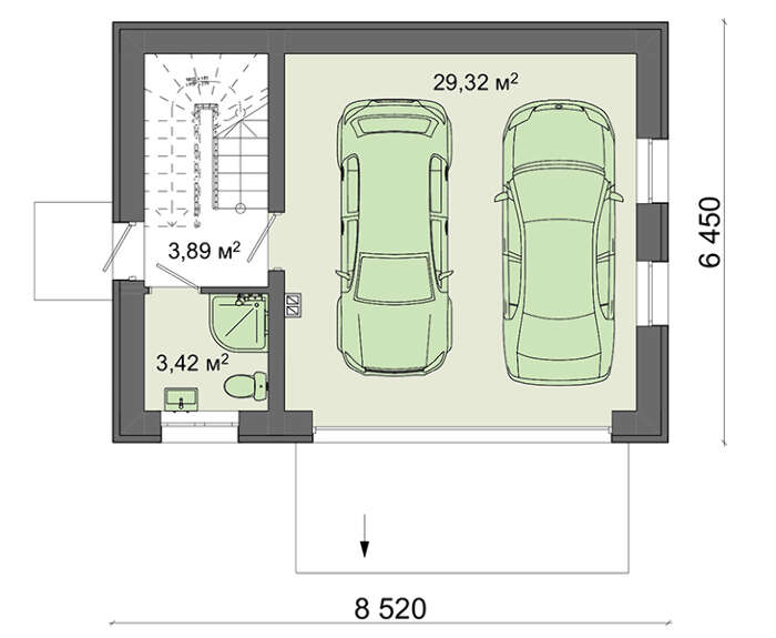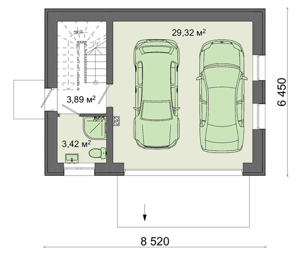 • 4M2781 Проект большого гаража с санузлом и мансардой
