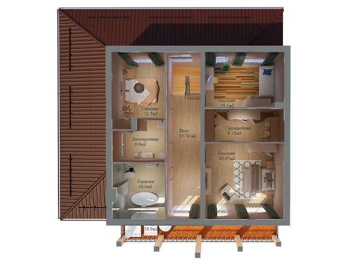 | Кровля: | керамическая черепица, металлочерепица, цементно-песчаная черепица |