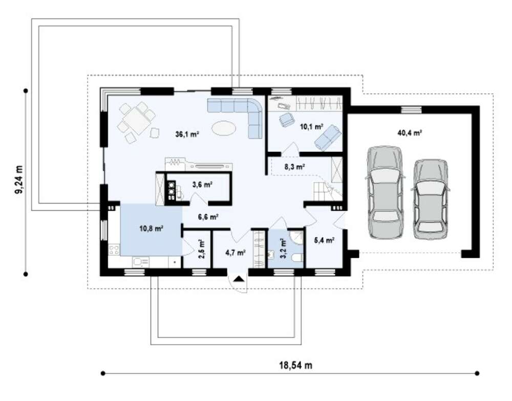Людям, ценящим комфорт и функциональность собственного жилья, понравится проект большого дома с гаражом, мансардой и дополнительной спальней.