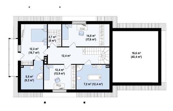 Три просторные спальни вынесены на второй этаж. Это уютное пространство дополняют ванная комната с прачечной и небольшая гардеробная общего пользования. А, кроме того, в самой большой спальне спроектирована еще одна ванная и предусмотрен выход на балкон.