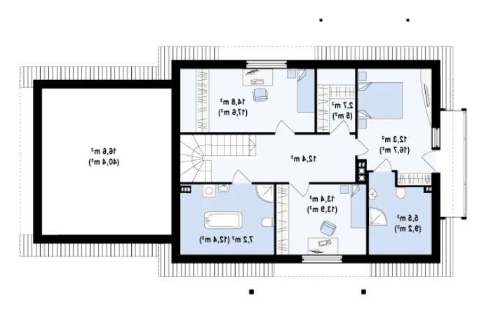 Три просторные спальни вынесены на второй этаж. Это уютное пространство дополняют ванная комната с прачечной и небольшая гардеробная общего пользования. А, кроме того, в самой большой спальне спроектирована еще одна ванная и предусмотрен выход на балкон.