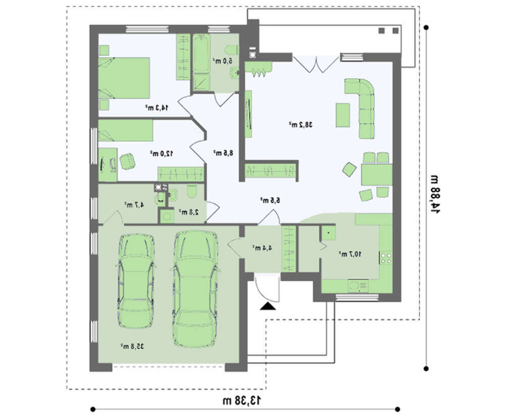 • 4M530 Проект большого одноэтажного коттеджа с гаражом для двух авто