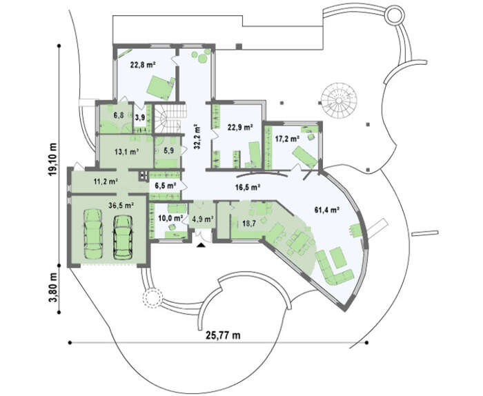 Проект большого особняка площадью 507 кв.м. с гаражом на 2 машины