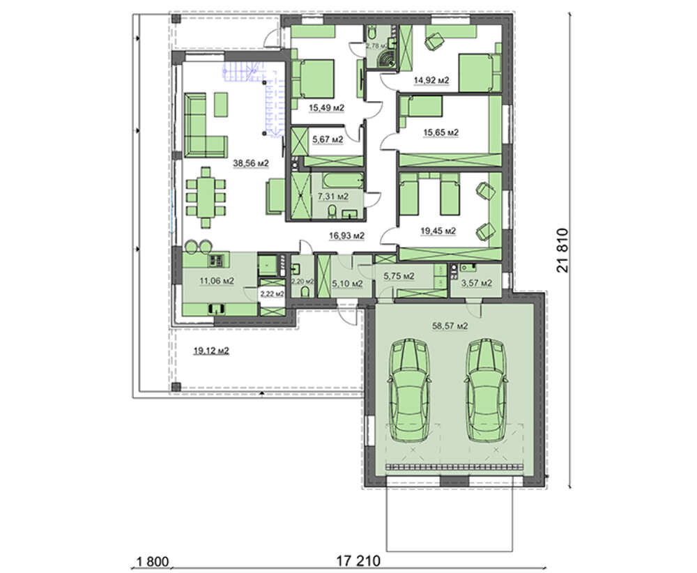 | Гараж: | Гараж на два авто |