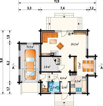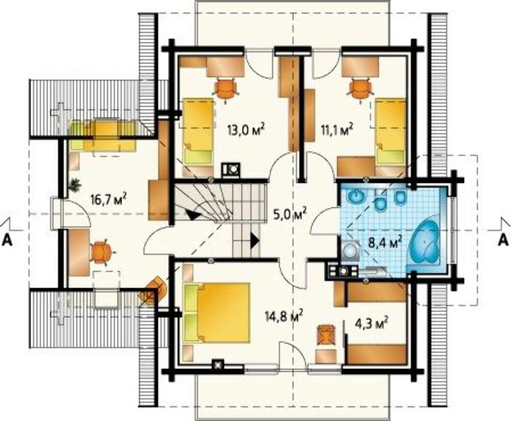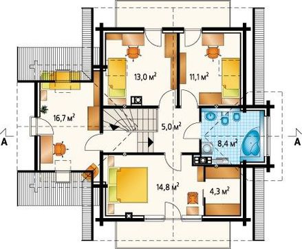 Живописное строение из дерева с шестью спальнями сделает ваш загородный участок красочным и запоминающимся. Сочного цвета древесина под яркою, словно сошедшей из сказки, крышей будет объектом повышенного внимания и восхищения всех жильцов округи. Искусно исполненный просторный балкончик не сможет остаться незамеченным и не вызвать шквал аплодисментов. Любого плана растительность от такого яркого окружения станет насыщеннее и интереснее, а сам загородный участок превратится в сюжет из сказки.