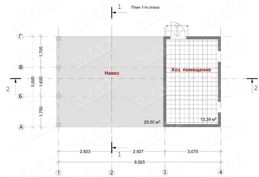 Проект деревянного навеса с хозяйственным помещением 4M2711