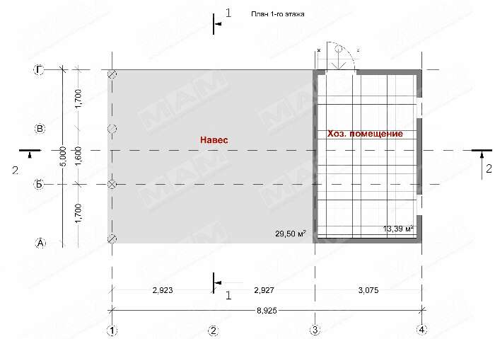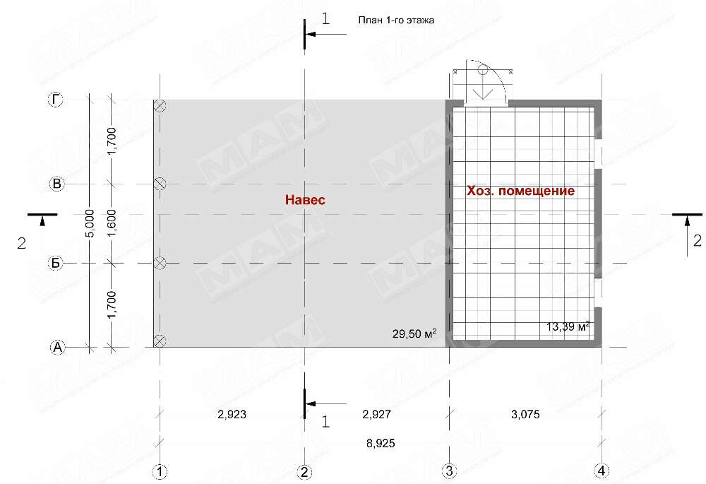 Проект деревянного навеса с хозяйственным помещением 4M2711
