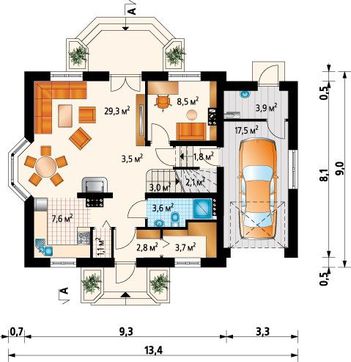 Проект для строительства симпатичного дома с гаражом на 1 авто и эркером