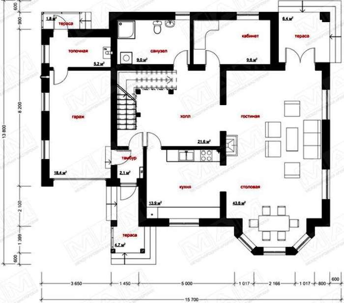 Приобретая проект дома в компании Dom4M, Вы получаете комплект чертежей - 2 экземпляра, необходимый для проведения строительных работ