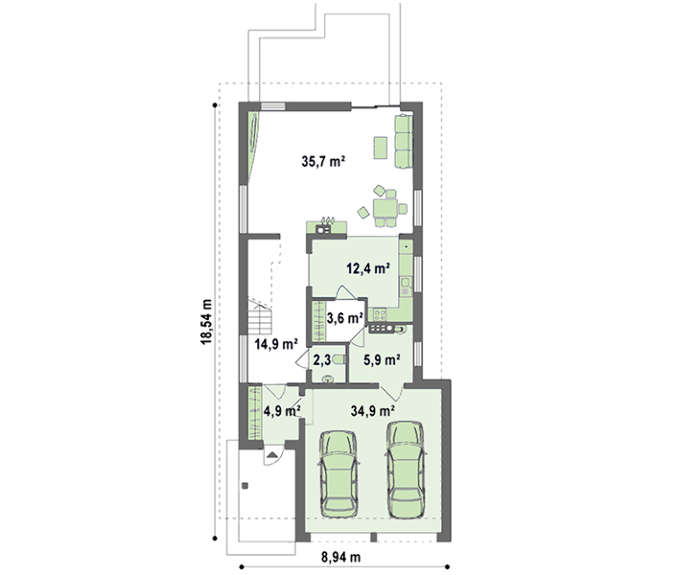 • 4M348 Проект дома для узкого участка с террасой над гаражом