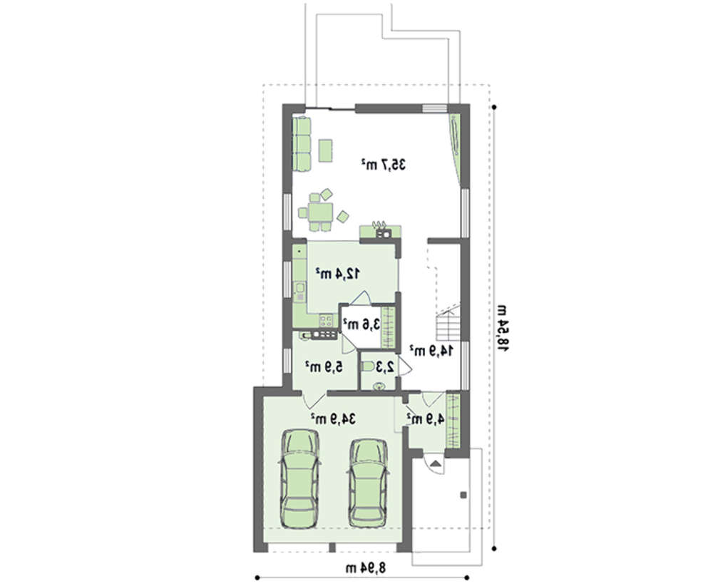 • 4M348 Проект дома для узкого участка с террасой над гаражом